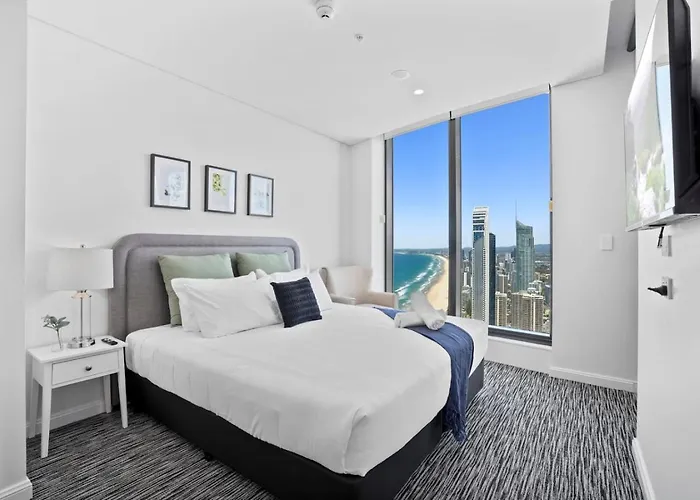 The 100 m² Meriton 3B Bedroom Ocean - City Views. Parking Gold Coast apartment is right in the centre of Gold Coast, only 0.6 km from the Cavill Mall. Near the Surfers Paradise Beachfront Markets, the apartment includes an indoor swimming pool as well as a sauna and an indoor pool.